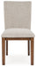 Experience worry-free living with this dining chair. Handle life's little messes with ease thanks to washable Next-Gen Nuvella™ performance fabric. Designed to effortlessly blend casual and refined aesthetics, the rich brown butcher block veneer exudes a modern, relaxed vibe you'll love.