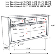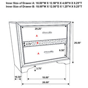 Create a stunning bedroom ensemble that's fit for modern royalty. Each gorgeous piece in this four-piece set flaunts silvery, sparkling accents for a truly glamorous look. The bed features a solid, straight silhouette and two storage drawers built into the base. The case pieces bring you even more storage space to keep your room looking neat and tidy. Available in a variety of colors and sizes, there's an option to bring any bedroom to life.